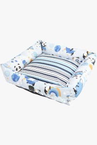 Zíper para retirada dos enchimentos laterais e central, facilitando a limpeza e a manutenção da higiene total ou parcial da caminha.