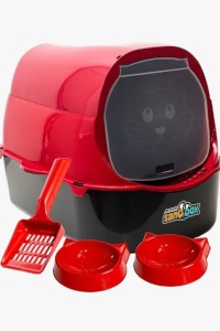 – Um produto completo que inclui uma pazinha e dois comedouros, tornando fácil e prático o cuidado com seu felino. Além disso, o Kit Sanitário Para Gatos é todo fechado o que evita que a areia seja jogada para fora da caixa mantendo o ambiente limpo e organizado, também possui um degrau higiênico na entrada que auxilia na limpeza das patas do seu gato e uma porta translúcida “vai e vem” que garante privacidade e controle de possíveis odores.