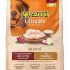 Farinha de carne e ossos bovino, farinha de vísceras de aves, milho integral moído*, farelo de trigo, farelo de soja**, óleo de vísceras de aves, palatabilizante de vísceras de suíno e frango, cloreto de sódio (sal comum), polpa de beterraba, semente de linhaça, maçã desidratada, vegetais desidratados (cenoura e espinafre), prebióticos (inulina e parede celular de levedura), extrato de yucca (0,04%), vitaminas (A, D3, E, C, K3, B1, B2, B6, B12, biotina, ácido fólico, pantotenato de cálcio, niacina, cloreto de colina), minerais (sulfato de ferro, sulfato de cobre, iodato de cálcio, óxido de manganês, óxido de zinco, proteinato de zinco, selenito de sódio, selênio levedura), ácido propiônico, BHA, BHT. Contém, na composição, alimento geneticamente modificado: milho* e soja**. Espécies doadoras de gene: Agrobacterium spp.* **, Bacillus thuringiensis* **, Arabidopsis thaliana** e Streptomyces spp.* **.
